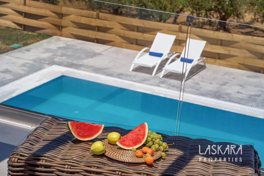The centerpiece of Villa Bianca is its 11-meter swimming pool, perched above the olive-clad hillsides. Here, days are spent in serene seclusion and nights under the starlit Ionian sky, with the comfort of knowing that every attraction, restaurant, and vibrant town square is just a short drive away.