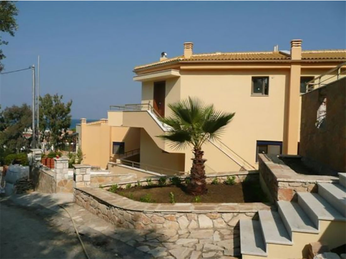 ensemble of villas is located on one of the most sought-after by investors and of course tourists on the island in Greece. It is located on the top of a small green hill, 25 m above sea level.