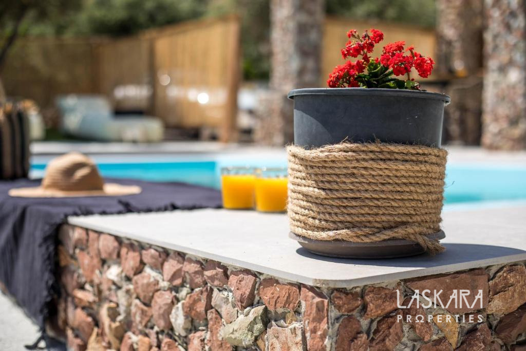 The private swimming pool is surrounded by lush greenery and olive trees, while the pergola-shaded terrace invites you to enjoy breakfast at sunrise or dinner under the stars. The villa’s elevated east-facing position ensures sunlight from early morning until late afternoon, turning every hour into a postcard moment.